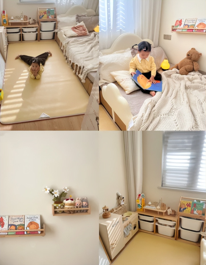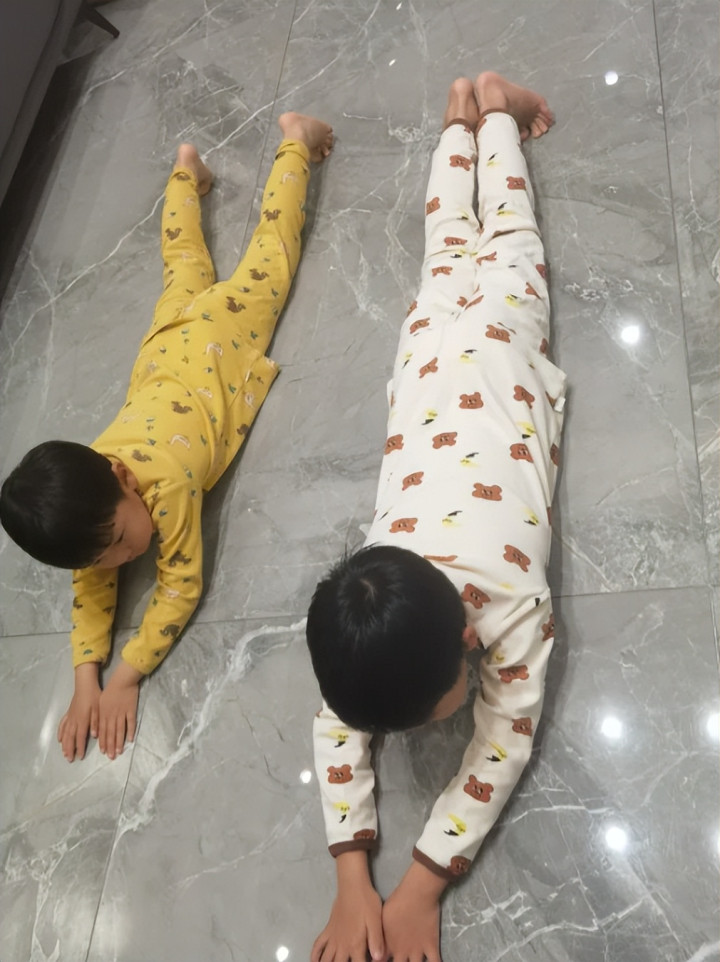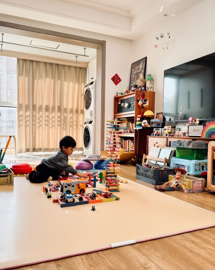 孩子在地上玩耍,光脚走动,不容易受凉。