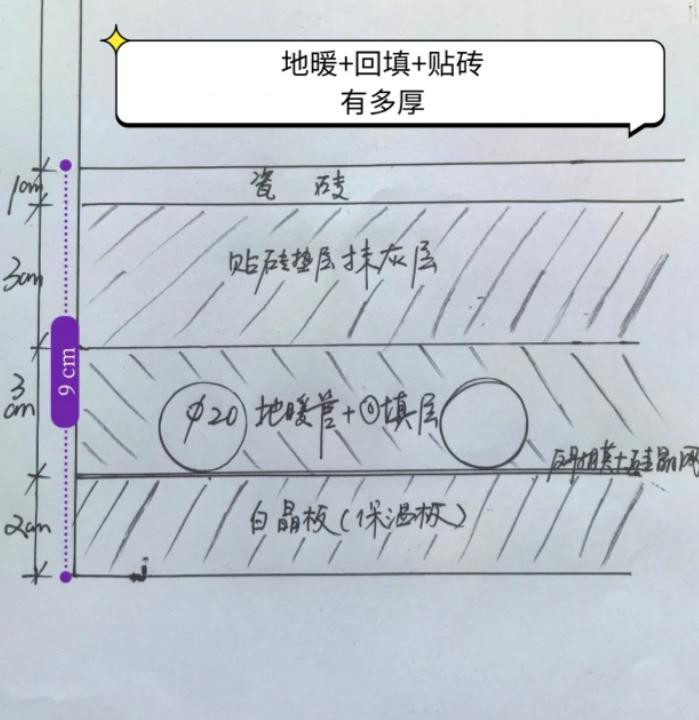 从保温层到回填,再到地面铺装,整体下来,少说也要接近10公分。