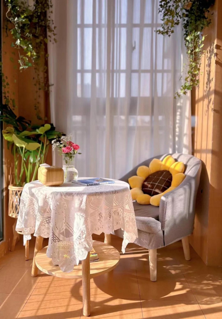 添一件你喜欢的东西:爱喝茶的放个小茶几;爱看书的老旧书架搬过来;什么都不爱的,放把露营椅最实在。